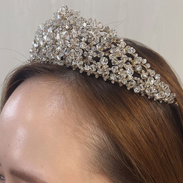 ・挙式や披露宴: 厳かな空間で、ティアラの持つ高貴な輝きが花嫁様の美しさを最高潮に引き立てます。
