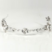 両サイドに配された大粒のクリスタルビジューが、まるでスポットライトを浴びたかのように華やかに輝き、視線を独り占めするヘッドアクセサリーです。顔周りに美しい輝きを添え、花嫁様の魅力を最大限に引き立てる、洗練されたデザインが特徴です。