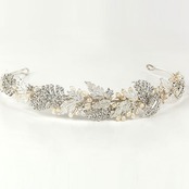 熟練職人の手作業によるワイヤー編みで、天然淡水パールや、ビジューが輝くリーフモチーフが繊細に組み合わされ、上品でありながらも華やかな印象を与えるティアラです。温かみのある天然淡水パールの輝きと、クリスタルのきらめきが、花嫁様の美しさを最高潮に引き立てます。