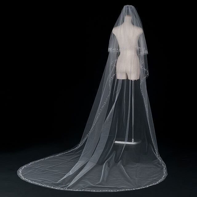 贅沢な刺繍と輝きが織りなす、高級感あふれるロングベール